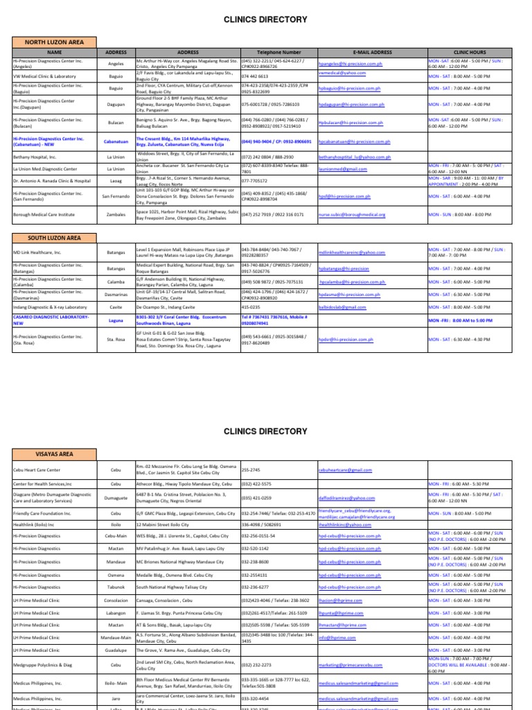 As Of October 2010 Accredited Clinics Caloocan Loreto Asuncion St Caloocan City Tel Las Pinas Pdf Free Download