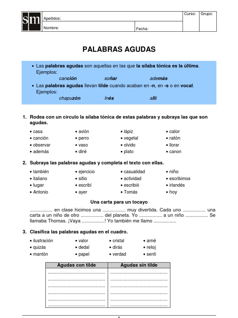 Palabras Agudas Grave O Lanas Y Esdrujulas