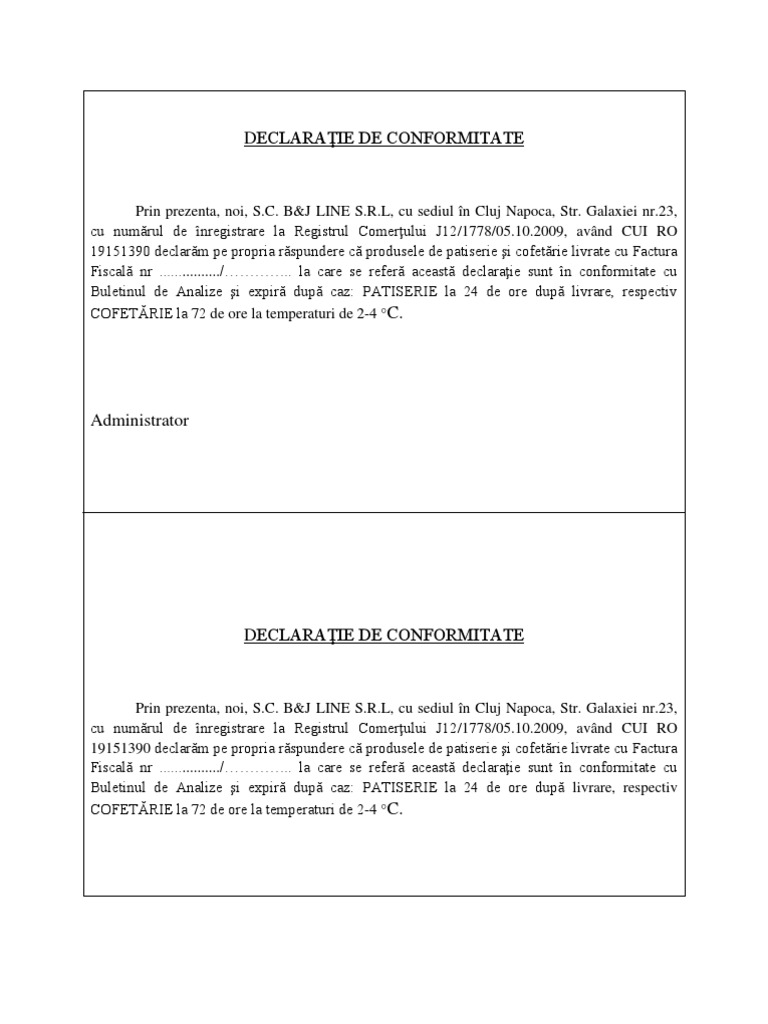 Declaraţie De Conformitate
